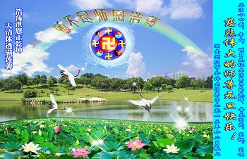 转眼间一年又过去了,即将迎来新的一年,宇宙也即将進入一个新纪元。最伟大、慈悲的师尊为宇宙一切众生所付出的是任何生命都无法想象的。新年之际,弟子给您送上一句最诚挚的祝福:师尊新年好!师尊你辛苦了! 在最后不长的时间里,弟子一定会走好师尊安排的证实法、救度众生之路,完成好自己的使命,兑现史前的誓约,随师返家园。 长沙市母子俩大法弟子 二零一三年十二月二十七日 湖南长沙大法弟子恭祝师尊元旦快乐