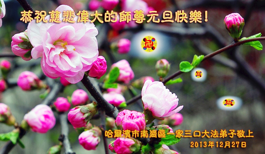 二零一三年过去了,弟子们明白是师尊带着众生走过这场劫难,是师尊无边的承受换来了所有众生重生的机会。新的一年里,弟子们唯有用实际行动兑现自己“助师正法”的誓约,多多救度众生,回报师恩! 大陆一大法弟子祝师父新年好!
