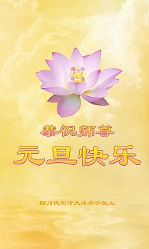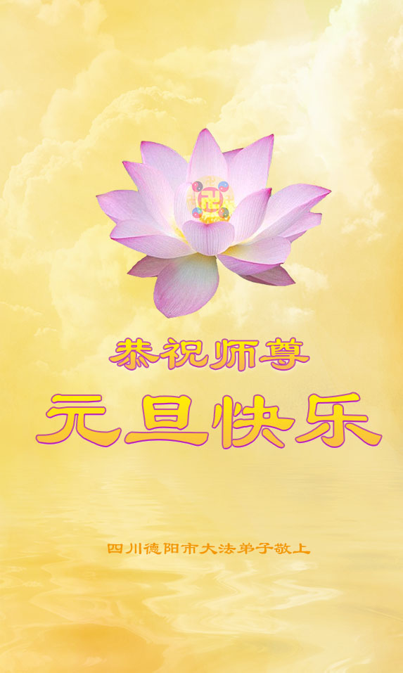 师父您好!师父辛苦了! 弟子们想念您,感恩师尊的慈悲苦度,想到师尊度我们的艰辛付出,心里感到十分难受,今后坚决学好法,整体配合好,做好三件事,坚决只走师父安排的路,只听师父的话,遇事向内找,向内修,实修自己,去人心,救度更多的众生,愿师尊多一份欣慰,少一分操劳。 四川广安华蓥市全体大法弟子敬上! 四川中江大法弟子恭祝师尊元旦快乐!