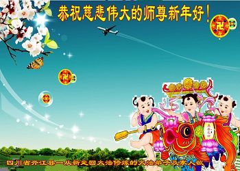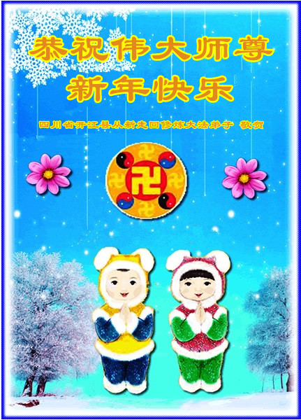转眼间正法又一年,深感时间的飞快和正法的突飞猛進。我们遂宁市全体大法弟子将在新的一年中一如既往的做好三件事,走在师尊安排的修炼道路上,珍惜师尊为众生巨大承受和辛苦付出延续来的一分一秒时间,弟子们无以回报师尊的浩荡佛恩,唯有勇猛精進,救度更多众生,坚信大法、坚信师尊到底。常人中的一切恩恩怨怨再也无法阻挡弟子们跟师尊回家的坚定步伐。请师尊放心,弟子们知道今后的路怎么走,经历了十几年的风风雨雨,弟子们历炼的成熟了、理智了、更加珍重师尊与弟子们的这份万古不遇的圣缘。在此佳节到来之时,弟子们盼师尊早日回国与大陆大法弟子大团圆,弟子们的心一直在期盼着那一天的到来,弟子们一定等师尊回国。普天同庆!四川遂宁市全体大法弟子敬上 四川省达州市开江县一从新走回大法修炼的大法弟子祝慈悲伟大的师尊新年快乐!