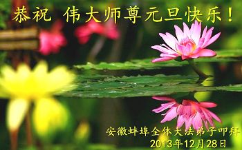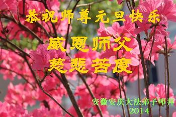 安徽弟子跪拜师尊,恭祝师尊新年好!不論前路还有多遠,还有多少風雨艰辛,我们都会坚持正念正信,精進助师行。 安徽安庆大法弟子恭祝师尊2014元旦快乐!