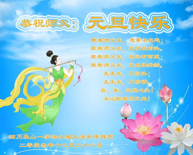 四川乐山全体大法弟子恭祝师父元旦快乐!