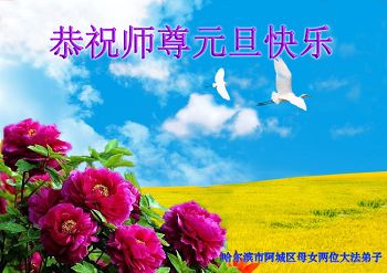 黑龙江省哈尔滨大法弟子慧清、慧莲恭祝师尊新年快乐!