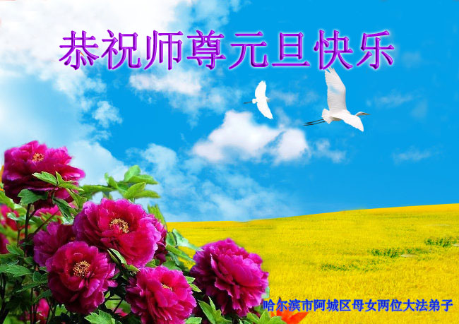 黑龙江省哈尔滨大法弟子全家恭祝师父新年快乐!