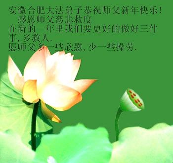 师父您辛苦了!安庆大法弟子想念您! 我们会按师父的要求做好三件事,不辜负师父的期望,圆满随师父还! 安徽省宿州市泗县全体大法弟子恭祝师尊元旦快乐!