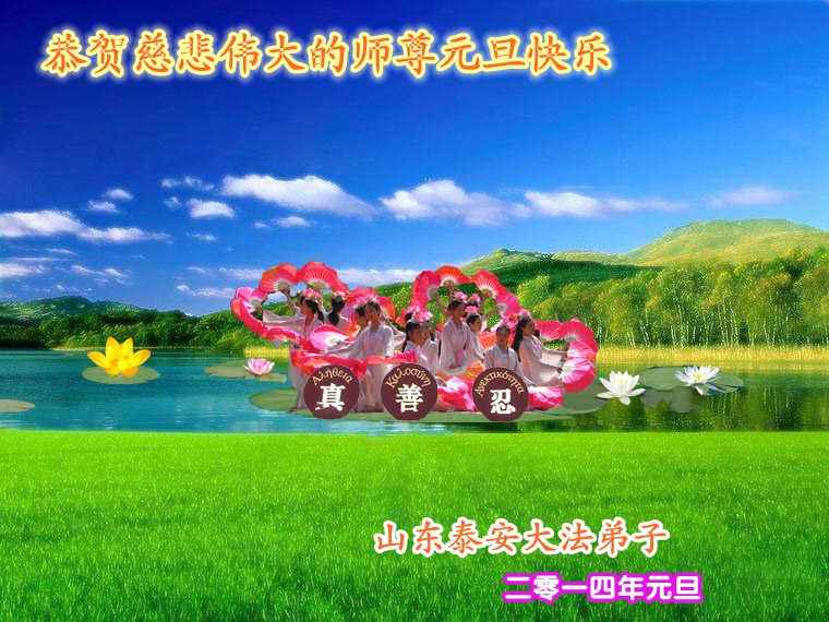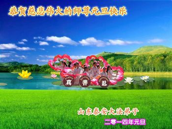 师尊,您辛苦了。在这最后时刻,我们一定会跟上正法進程,做好三件事,随师返家园。 山东泰安大法弟子恭贺慈悲伟大的师尊元旦快乐!