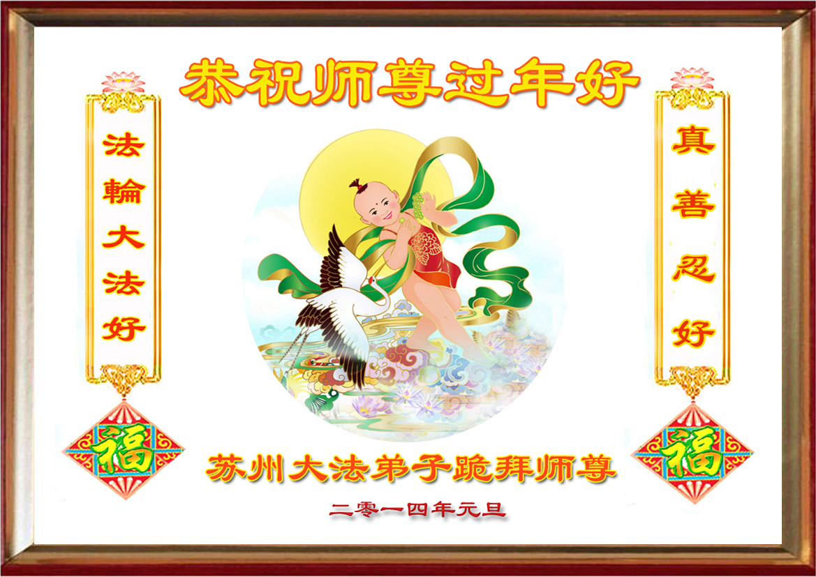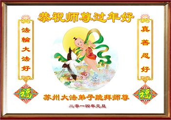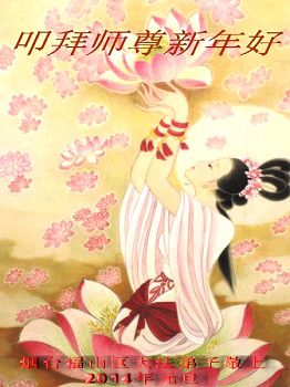 在2014年新年到来之际,江苏大法弟子问候师尊新年好!师尊您辛苦了也! 在此也祝全球大法弟子新年好! 江苏大法弟子敬祝 2013年12月26日 江苏南通大法弟子恭祝师父新年快乐!