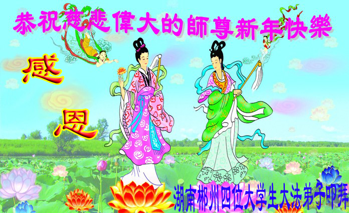弟子叩拜师尊! 恭祝师尊新年快乐! 感恩师尊慈悲救度! 湖南郴州四位大学大法弟子恭祝伟大师父新年快乐!