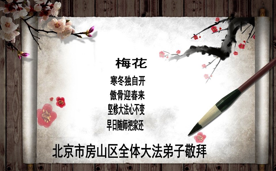 师尊过年好:师尊您辛苦了,弟子们想念您,弟子会在新的一年里更精進,修好自己,做好三件事,兑现史前的大愿,随师尊回家。 北京市房山区全体大法弟子祝师尊新年快乐!