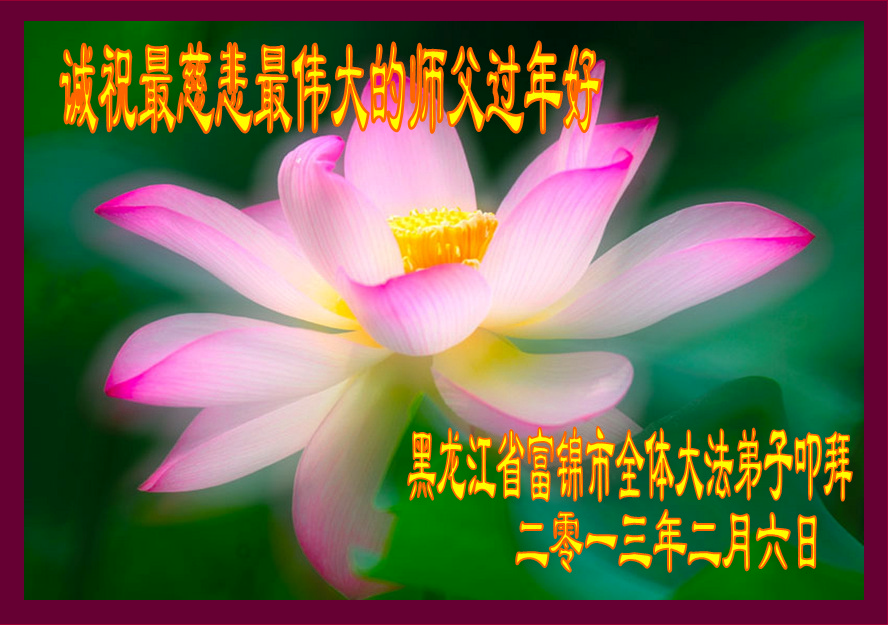 【明慧网二零一三年二月十一日】 黑龙江佳木斯地区富锦市全体大法弟子同心同祝同贺最伟大的师父过年好!