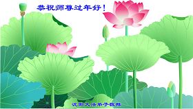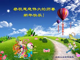 我们不知道您为宇宙中生命承受多少!我们只知道用我们生命的永远也无法表达对师父的感恩! 弟子们唯有在这正法最后的时刻里精進,再精進,踏踏实实的做好三件事,带着无量的众生圆满随师还!最后再一次恭祝师父过年好!师父谢谢您! 辽宁省沈阳市苏家屯区大法弟子恭祝师父过年好!