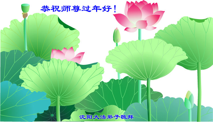 风风雨雨我们又走过了一年,期间慈悲伟大师父给予我们的呵护无法用人间的语言表达。泪眼婆娑难表达我们心底对师父的感恩与思念。师父,请您倾听我们——来自遥远的沈北新区全体大法弟子对您新年的祝福:师父您过年好!师父您过年好!师父您过年好!在新的一年里我们一定更加努力修好自己,做好三件事,多救人,不负师父的慈悲苦度。 沈阳市沈北新区全体大法弟子向慈悲伟大的师父双手合十! 大陆大法弟子辽宁省沈阳俩姐妹恭祝恩师过年好!