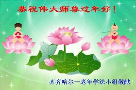 黑龙江省齐齐哈尔一老年大法弟子恭祝师尊新年好!