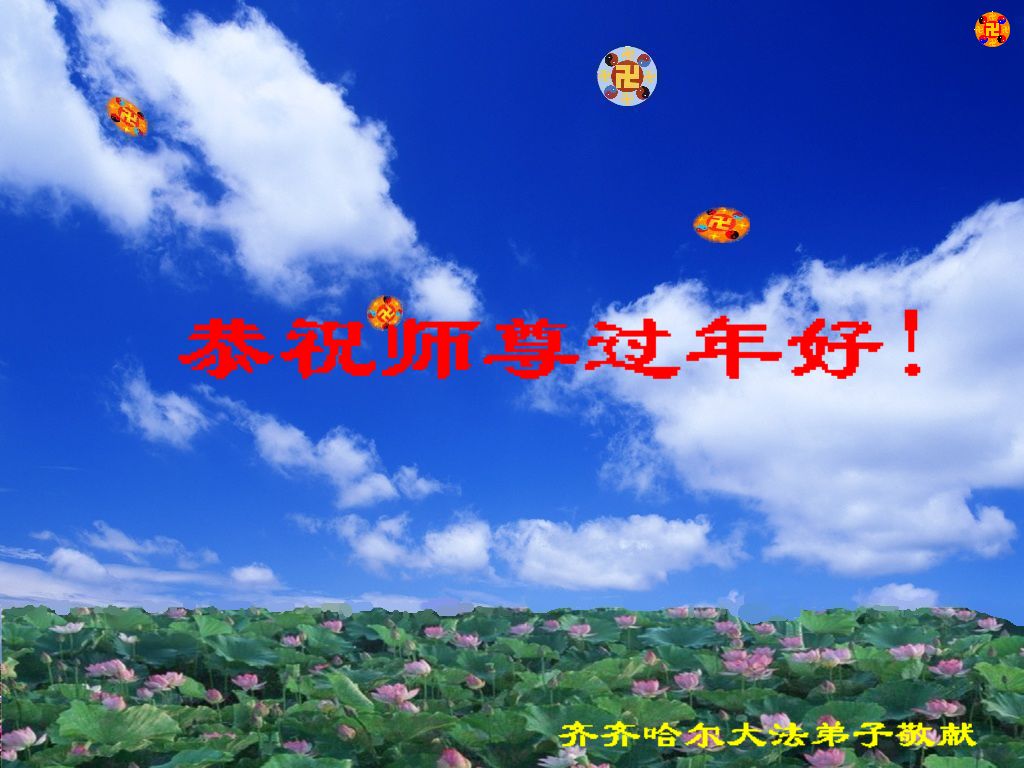 感谢师父的慈悲救度与呵护。突破困魔干扰,努力做好三件事,跟上正法進程,圆满随师还。 黑龙江齐齐哈尔市大法弟子恭祝慈悲伟大的师尊新年快乐!