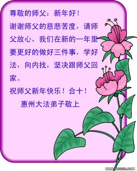 【明慧网二零一三年二月十一日】 广东省惠州大法弟子祝师父新年快乐!