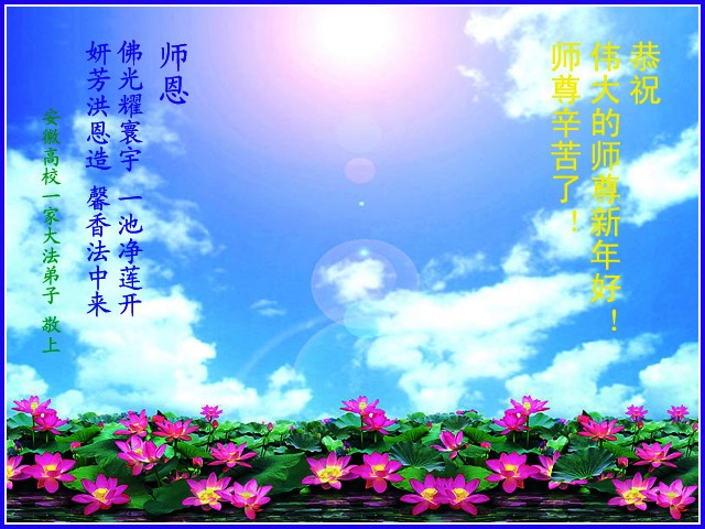 佳节之际弟子们更加想念师尊,渴望着早日见到您! 大陆教育系统大法弟子向慈悲伟大的师父问好!敬祝师父新年快乐!
