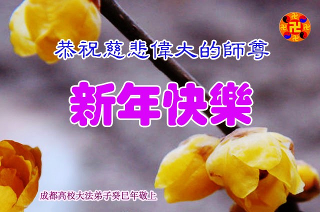 四川省成都高校大法弟子恭祝慈悲伟大的师尊新年快乐!
