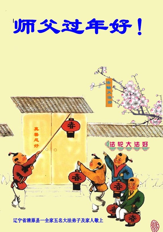 辽宁省抚顺市清原县大法弟子及全家五口恭祝伟大慈悲的师尊过年好!