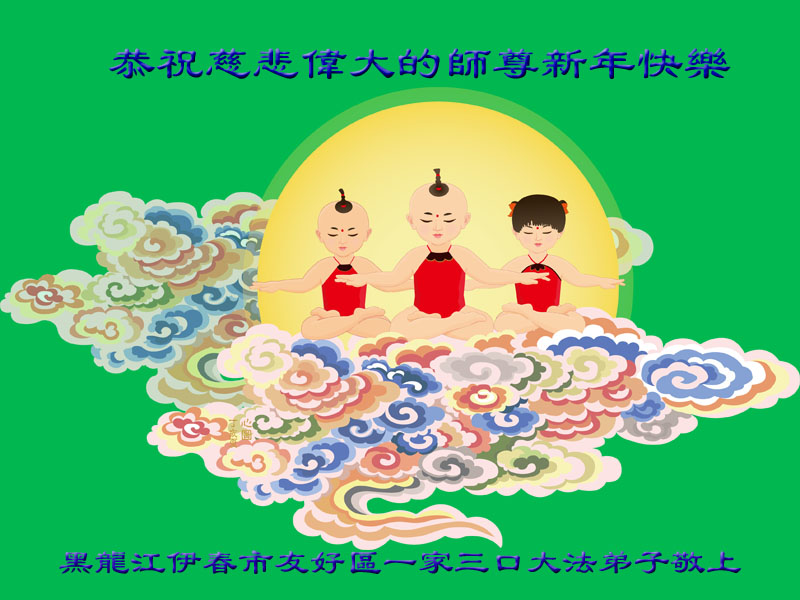 黑龙江伊春市友好区一家三口大法弟子恭祝慈悲伟大的师尊新年快乐!