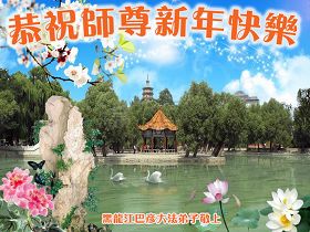 中国大陆黑龙江省哈尔滨市阿城区付氏大法弟子全家向慈悲伟大的师尊拜贺新年,恭祝师尊新年快乐! 弟子们向师尊保证,在新的一年里,一定努力做好三件事,走好师尊安排的路,不辜负师尊的慈悲普度。 吉林省白城市大安市全体大法弟子给师尊拜年!恭祝师尊新年快乐!