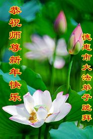 恭祝伟大慈悲的师尊新年好! 我是长春2006年得法的大法弟子,我发自最最崇高的敬意,衷心祝愿伟大慈悲的师尊新年快乐! 吉林省长春四人学法小组祝师尊新年好