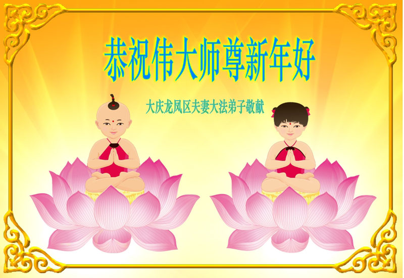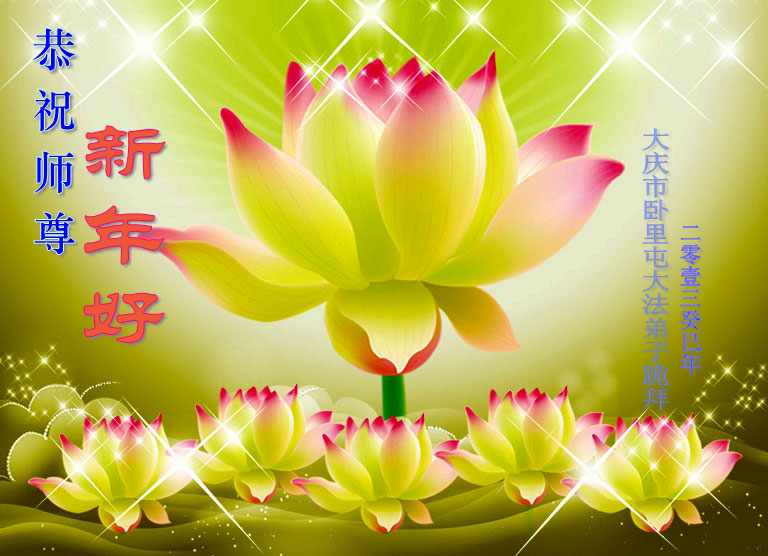 悠悠岁月不知年, 生生世世醉谜团。 幸得大法遇师尊, 万事破迷上法船。 一片感恩荡心弦, 岁岁年年报不完。 精進报恩老话题, 再去执著新念添。 恭请师尊心放宽, 弟子精進循您言。 一思一念皆在法, 修心救人不畏难。 黑龙江省大庆大法弟子给慈悲救度我们的伟大师尊拜年:恭祝慈悲伟大的师尊新年好!师尊新年快乐!感恩师尊慈悲苦度!