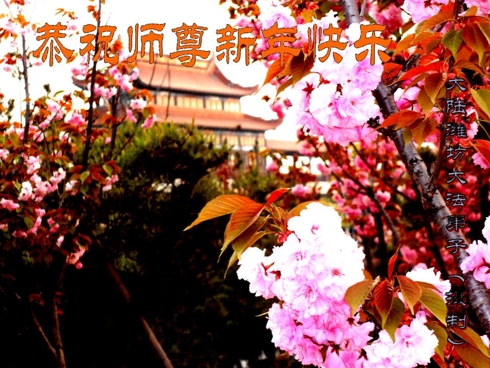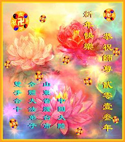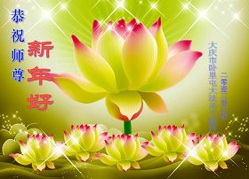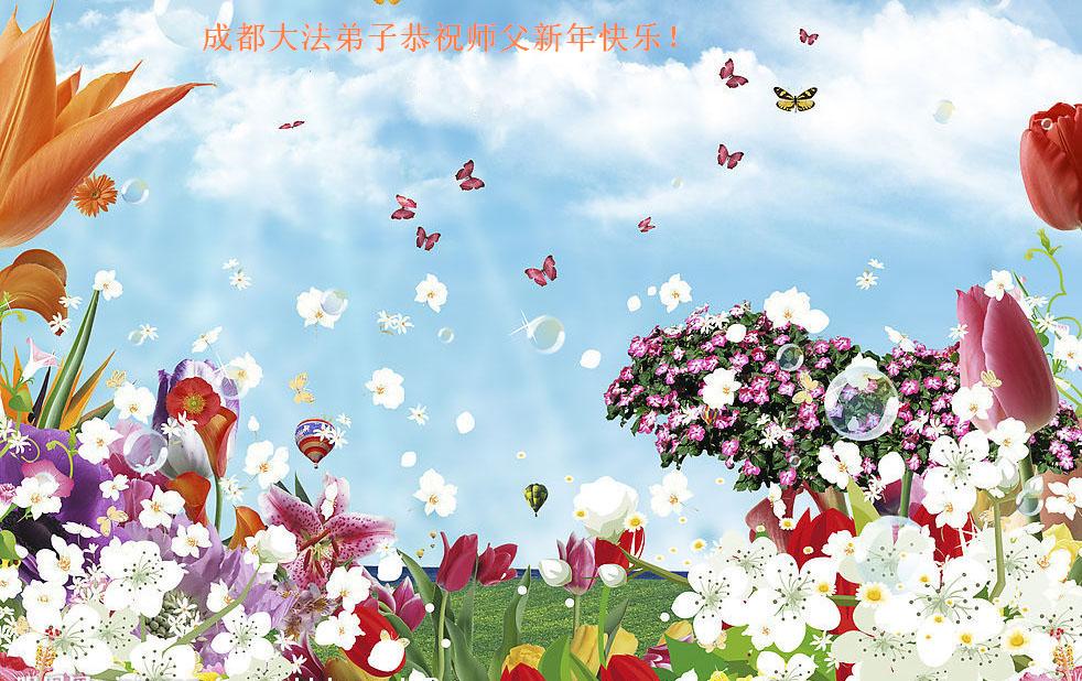 慈悲伟大的师尊新年好!在新的一年里,我们一定会珍惜师尊用巨大承受换来的时间抓紧救度世人,做好三件事,修好自己,请师尊放心。弟子们叩拜师尊。 四川省成都大法弟子恭祝师父新年快乐!