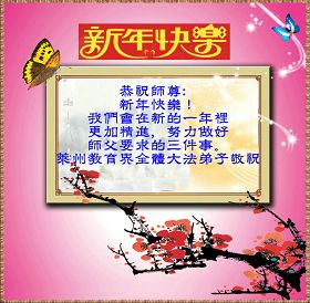 师尊辛苦了,弟子在新的一年里,一定勇猛精進,做好三件事,唯愿师尊笑! 辽宁省大连大法弟子恭祝师尊新年好!
