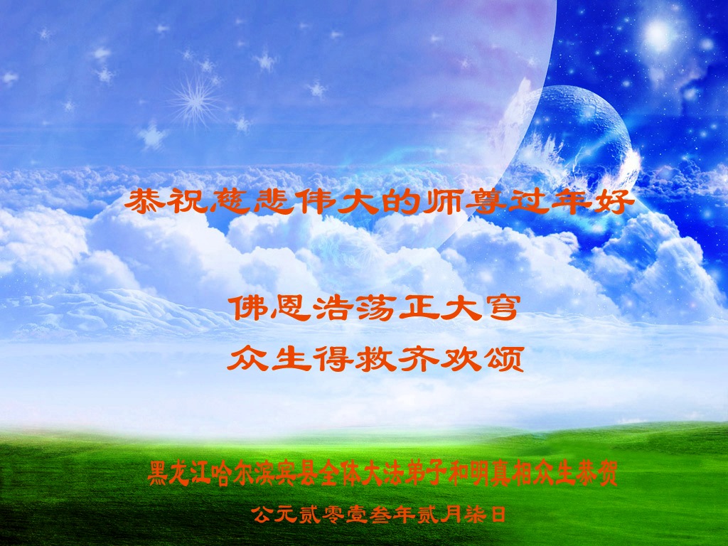黑龙江宾县全体众生给师尊拜年!感恩师尊慈悲救度再造! 天津市河东区学法小组弟子祝师尊新年快乐