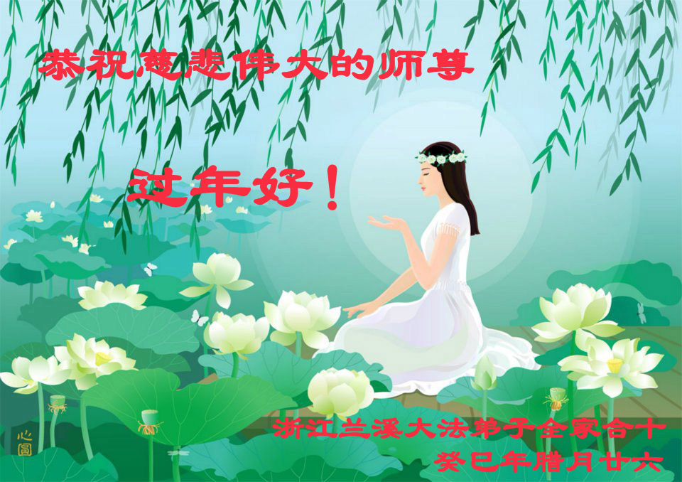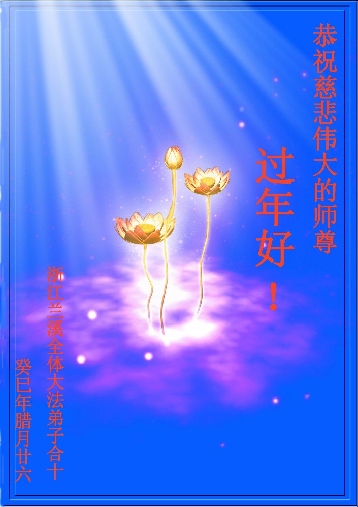 河南省新乡10岁大法小弟子和母亲同修一同恭祝师尊新年好!新的一年,小弟子,母亲同修和姥姥同修一定要更加精進,请师尊放心!师尊新年快乐! 浙江省金华市兰溪市大法弟子全家恭祝师尊新年好