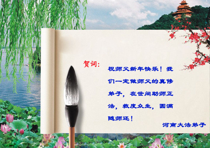 祝师尊过年好!弟子一定在新的一年里,认真做好三件事,不辜负师尊的慈悲苦度。 河北保定市白沟全体大法弟子恭祝师父新年好!
