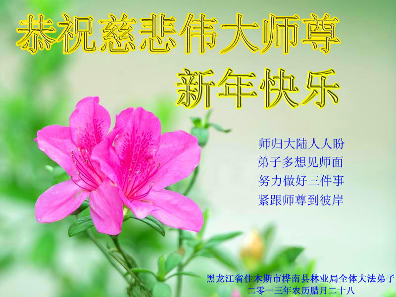 送给师父的新年贺卡。 黑龙江佳木斯桦南林业局全体大法弟子恭祝师尊新年快乐!