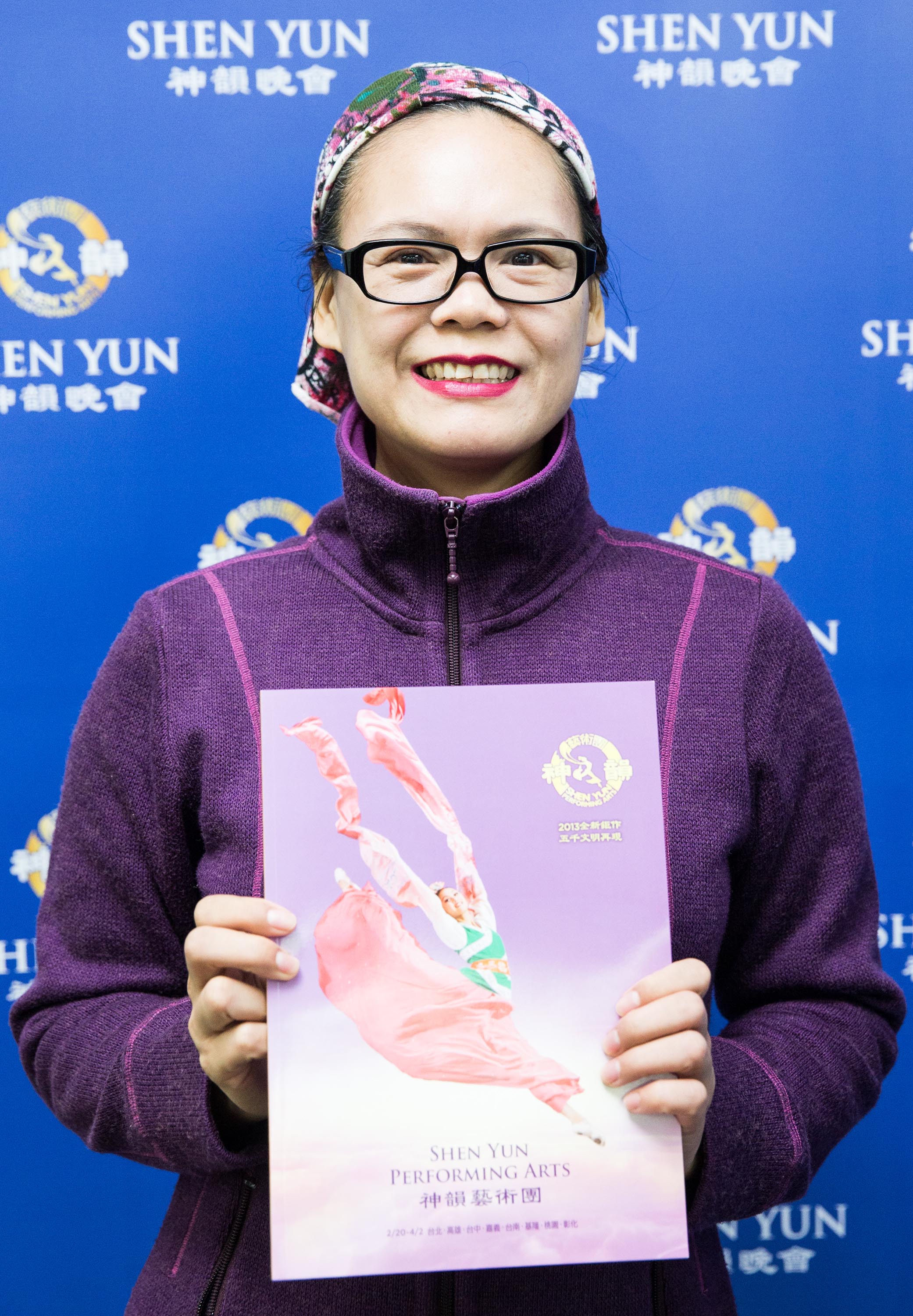 每年有超过八十五个国家、一万多位广告业代表出席的全球最大国际广告盛会“坎城国际创意节”,其独家在台官方代表赖治怡第二度观赏神韵,赖治怡称“这次不同以往的‘初看美丽热闹’,而是以‘再看内涵门道’的心情,体悟神韵晚会带给台湾观众的大礼,感触特别多。” 赖治怡说:“晚会中的色彩斑斓漂亮,启发我生活应是充满光明希望,多彩多姿的。”赖治怡对神韵服装设计和用色上的讲究留下了深刻印象,她说:“如果每个色彩都是一种能量,坐在这里的感觉就是沉浸在鲜艳色彩能量中,感受到一种令人振奋的能量。”她表示:“我观察平常的穿着,如果望眼看去全是黑色的,表示我们在用色上,都受到了西方的影响,可是舞台上呈现这样斑斓的色彩,却是根源于我们的文化,神韵在恢复神传文明的美学用色,对我启发很大。” 赖治怡观赏神韵的另外一个启发是:“如果今晚舞台上正统艺术的服装、用色,还有乐团的传统配器,若是真能普遍在我们日常生活中,那会有多美!”赖治怡不断强调应该对正统文化根源有重新的认识,她说:“现在很多人都忘了我们有这么丰富的宝贝,例如神韵晚会中的色彩、器物材质、质地等就很丰富,对颜色的运用很考究,让人感觉上传统却又很创新,深涵寓意,让我很想知道,他们到底是用了什么材质?为什么会这么漂亮?” 最后,赖治怡呼吁:“正统文化能呼应每个人心中深处的认同感,人们需知道自己正统文化的根,一定要来看神韵,因为她的美,是必需亲自坐在现场才能够体会的。我不知如何跟外国朋友介绍,但反而觉得所有的华人都应该来观赏神韵。” 国际知名画家:神韵是用艺术传大道 从十四岁就开始参加各种大型演出活动的知名画家赵德婉女士,暌违一年第二次前来观看演出。被神韵出神入化的美妙仙境所吸引的她激动地表示:“神韵是用艺术传大道,展现的是世界大同的精神。” 她表示:“神韵这个名字取得太好了,神就是天上的,看到那些天兵天将,感觉自己真的在天堂,整个人都在提升,连每一根头发都能感受到,那种感觉难以言表,令我很激动。神韵,是有缘人才能看得到的。”赵女士边说边用手不停地抚摸自己的头发,似乎仍在寻找当时的感受。 当看到《神佛的慈悲》中灾难来临,天塌地陷的时刻,神来救人,使满目疮痍的大地马上恢复了原貌,她感到无比神奇。她说:“神在天上,人应该想通了,要重新做人才能被神救。” 喜欢艺术绘画,从小就开始参加各种大型演出的赵德婉表示:“古人云‘文以载道’。神韵是大道。神韵是用艺术传大道,传播的是一种世界大同精神。” 韩侨退休舞蹈教师:对演员付出充满感恩  韩侨舞蹈退休教师周鸿兰女士观赏神韵后表示,内心充满着无比的感动及感恩之情。 |