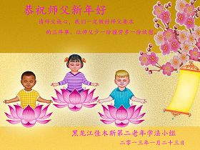 小组学法好,同修来的早。 风雨都不误,学法热情高。 聚精会神读,法理记得牢。 认真向内找,做到师尊要。 助师证实法,法救众生笑。 叩首谢师尊,祝师新年好。 黑龙江省佳木斯三位老年大法弟子恭祝伟大师尊新年快乐!