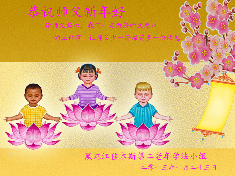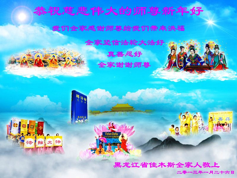 【明慧网二零一三年二月七日】 黑龙江省佳木斯大法弟子恭祝伟大师尊新年快乐!