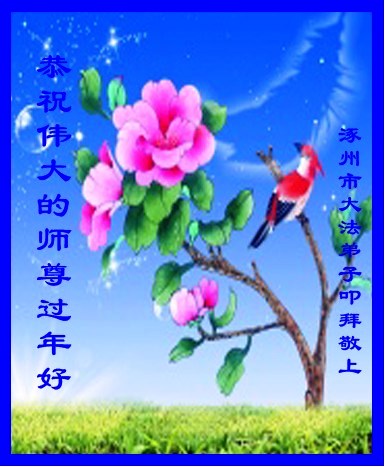 在新年到来之际,弟子提前给师父拜年了!恭祝师尊新年快乐!一并奉上第一次制作的贺卡,以表寸心。 河北省保定一社区大法弟子恭祝师尊新年快乐!