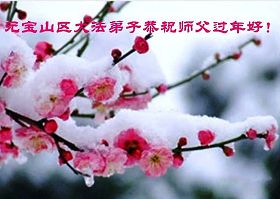 寒冬逝去,冰雪溶开,朵朵梅花儿绽放枝头,展示着春天的到来。师父啊!在您的慈悲呵护下,我们走过了酷暑寒冬,迎来了新纪元。师父啊!弟子们翘首仰望期盼您早日归大陆。赤峰市元宝山区全体大法弟子给您合十跪拜,恭祝师父过年好! 元宝山区全体大法弟子 二零一三年一月二十六日 内蒙古全体蒙古族大法弟子恭祝师父过年好!