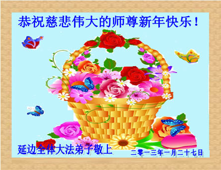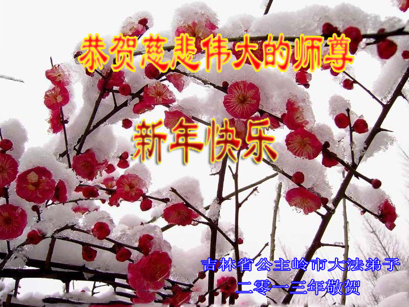【明慧网二零一三年二月七日】 吉林省四平市公主岭市大法弟子恭贺慈悲伟大的师尊新年快乐!
