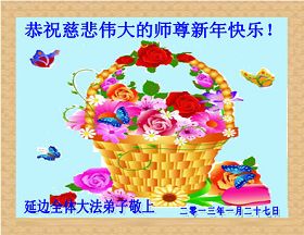 在新的一年里,弟子更应该走好自己的路,做好师父要求的三件事,勇猛精進。 吉林省延边州和龙大法弟子恭贺伟大慈悲师父新年快乐!