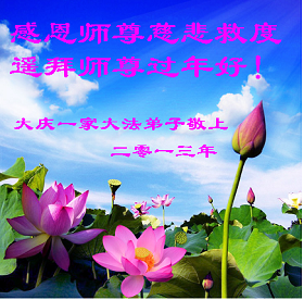 大庆大法弟子敬上 黑龙江省大庆一家大法弟子感恩师尊慈悲救度,遥拜我们的伟大师尊过年好!