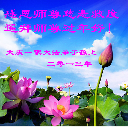 【明慧网二零一三年二月七日】 黑龙江省大庆一老年大法弟子祝愿慈悲救度我们的伟大师尊过年好!