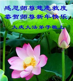 用尽人类的语言无法表达弟子对师尊的感恩!唯以一颗虔诚的心奋力精進,多救众生,以慰师尊。弟子叩拜师尊!愿师尊在新的一年里欣慰多多! 黑龙江省大庆大法弟子恭贺慈悲救度我们的伟大师尊新年快乐!