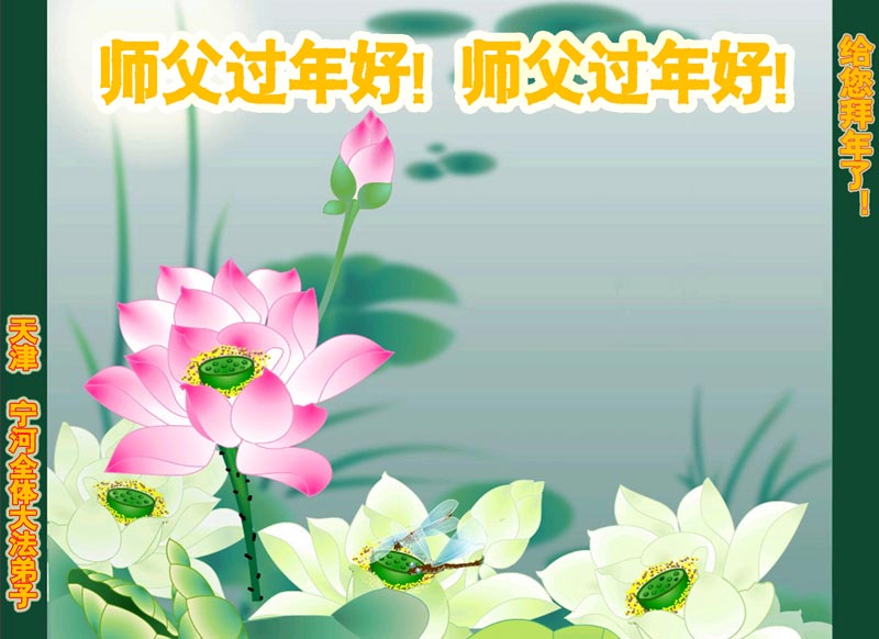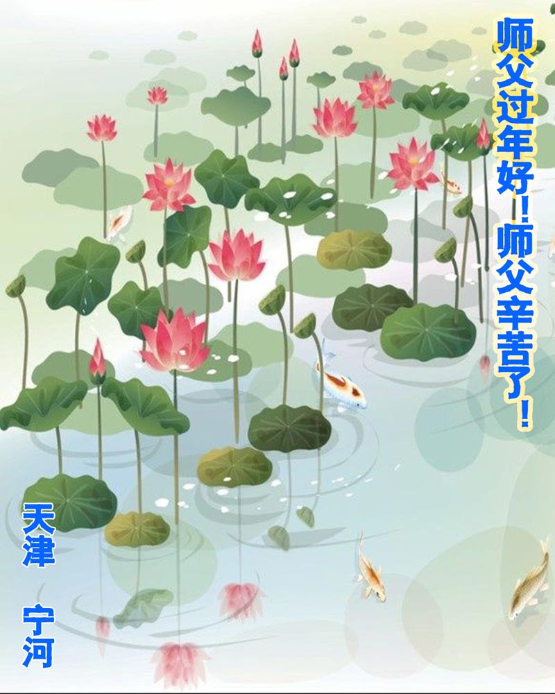 慈悲的恩师啊,为了芸芸众生,您吃遍了宇宙的苦,为弟子承受的一切,弟子们无以为报,只有精進再精進,做好三件事,尽量减少师尊为弟子们和众生的承受。恩师啊,过年了,弟子们想念恩师啊!在遥远的天津宁河,弟子们心念师尊,向您跪拜!弟子们一定紧跟师尊救苍宇大穹的步伐,师尊,请您放心吧! 天津宁河全体大法弟子恭祝师尊新年快乐!