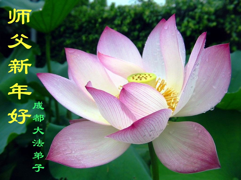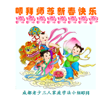四川省成都圣莲小组大法弟子及家人向伟大慈悲的师父拜年!衷心祝愿师尊新年快乐!