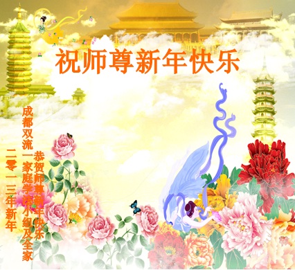 祝贺师尊新年快乐!师父辛苦了!我们双流学法小组在新的一年里一定好好精進,做好三件事!谢谢师父! 四川省成都市温江区全体大法弟子祝师父新年好!