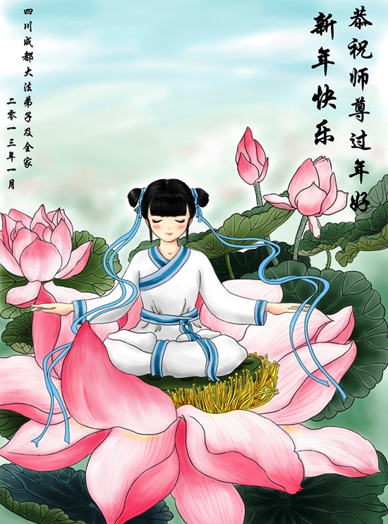 用尽千言万语也无法表达师父对弟子的慈悲苦度和在难中的悉心呵护!我们一定按照师父的要求做好三件事,遇到矛盾向内找,同化大法,不断的精進,再精進!跟师父回家! 邛崃市一家三名大法弟子敬祝 二零一三年一月三十日 四川省成都大法弟子恭祝师尊过年好!