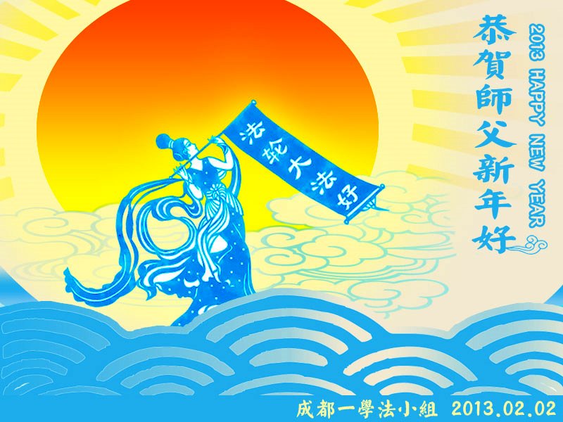 【明慧网二零一三年二月七日】 四川省成都双流一家庭学法小组祝师尊新年快乐!
