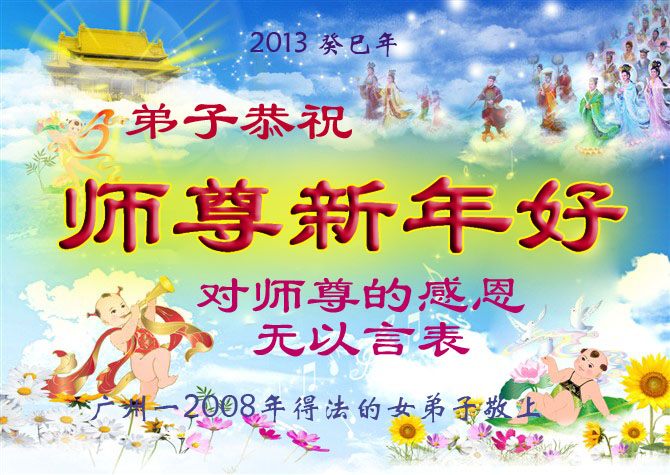 【明慧网二零一三年二月七日】 广东省东莞市一个2011年得法的女弟子敬祝师尊新年好