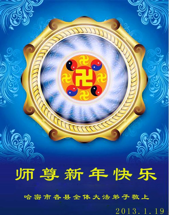 新疆克拉玛依大法弟子会按照师父说的去做,修好自己,救度众生,完成誓愿。全体大法弟子恭祝伟大的师父新年好! 新疆维吾尔自治区哈密市各县全体大法弟子恭祝师尊新年好