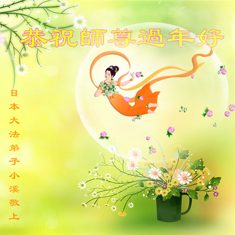 日本大法小弟子迫浩意(男,13岁)手工制作贺卡恭祝师尊新年快乐!